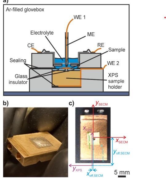 创新样品转移设计:特制样品架可实现电极在 SECM 电解池内的循环测试,且能在氩气手套箱保护下,将样品无损转移至 XPS 仪器,全程避免空气与水分干扰;
